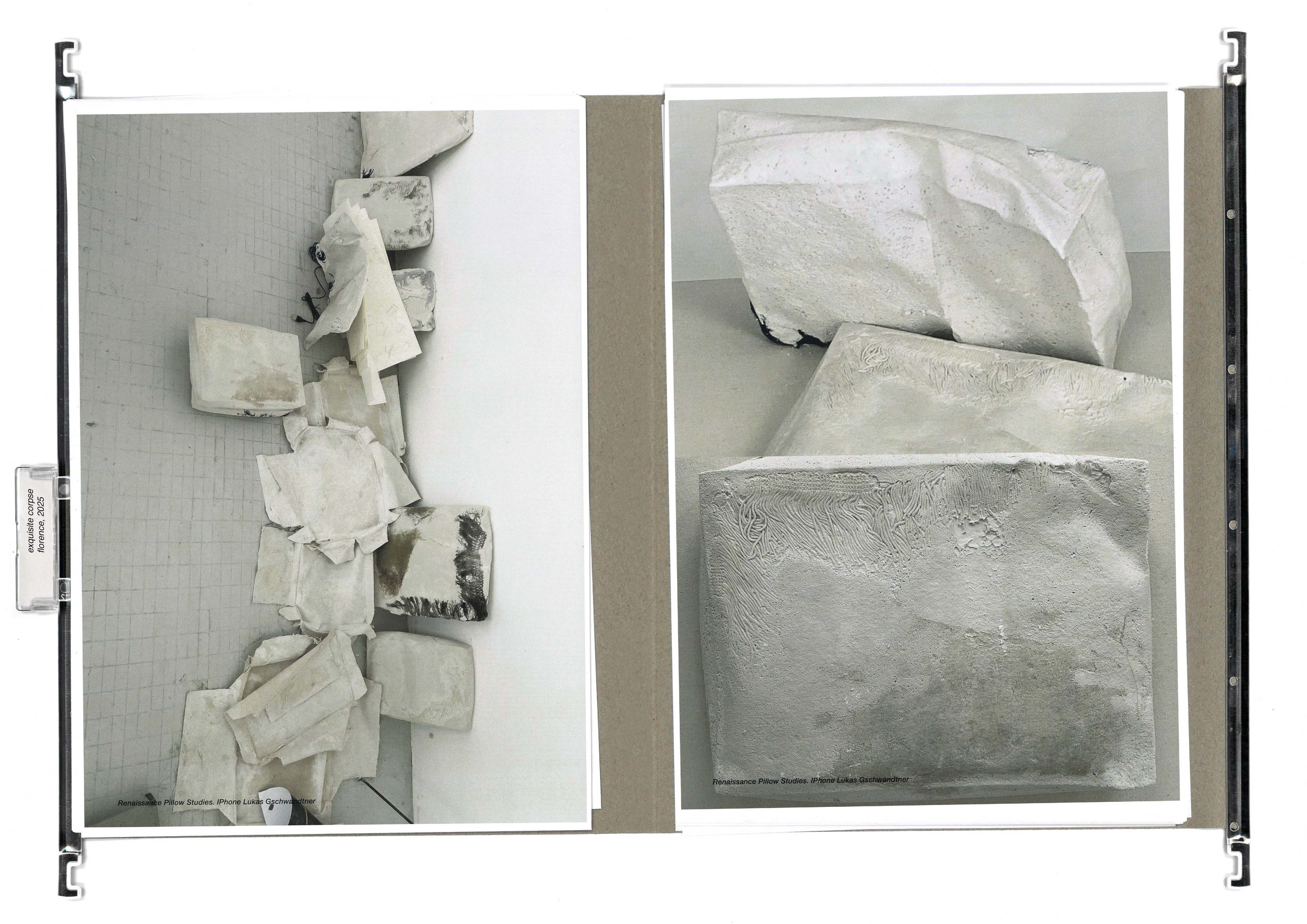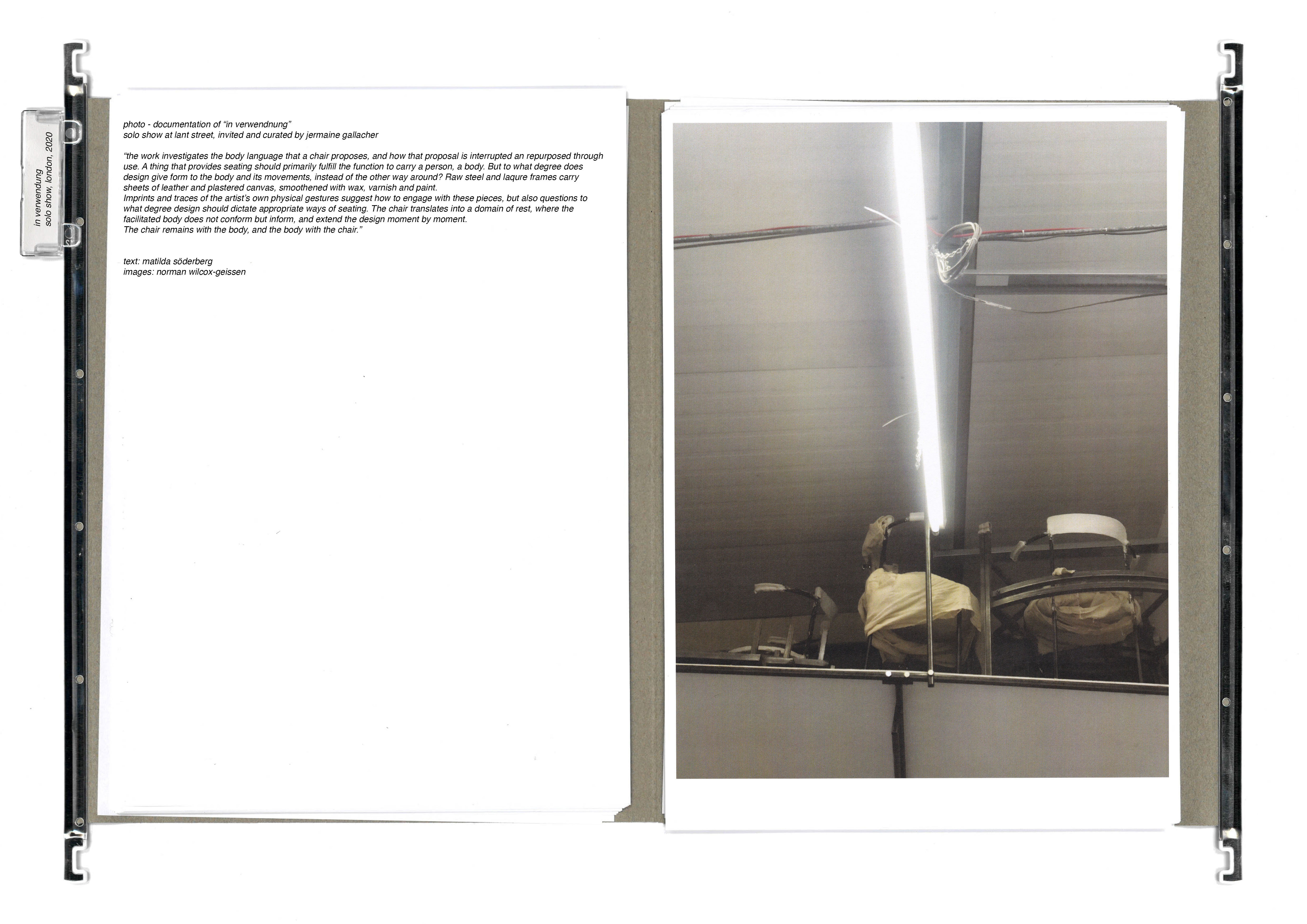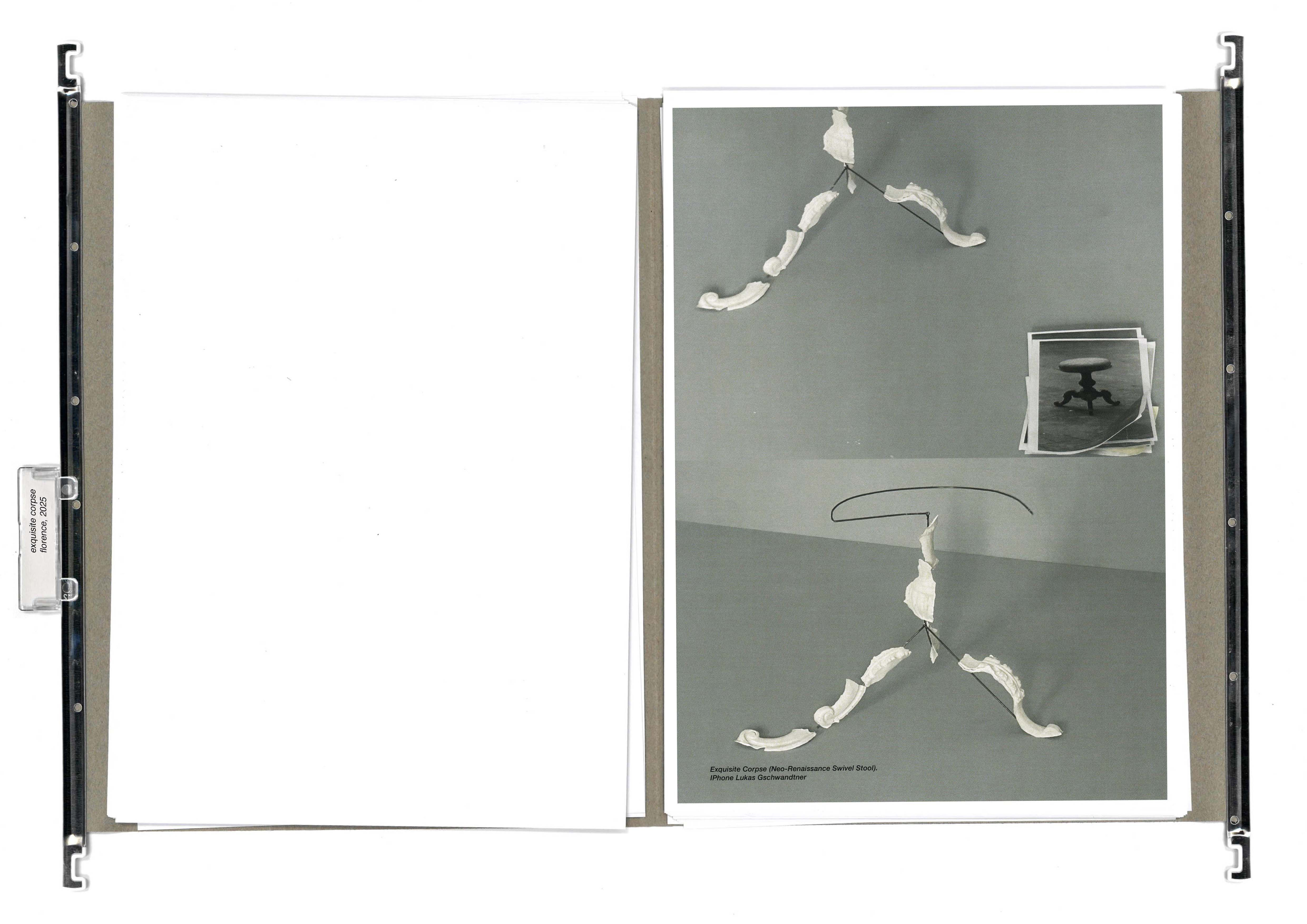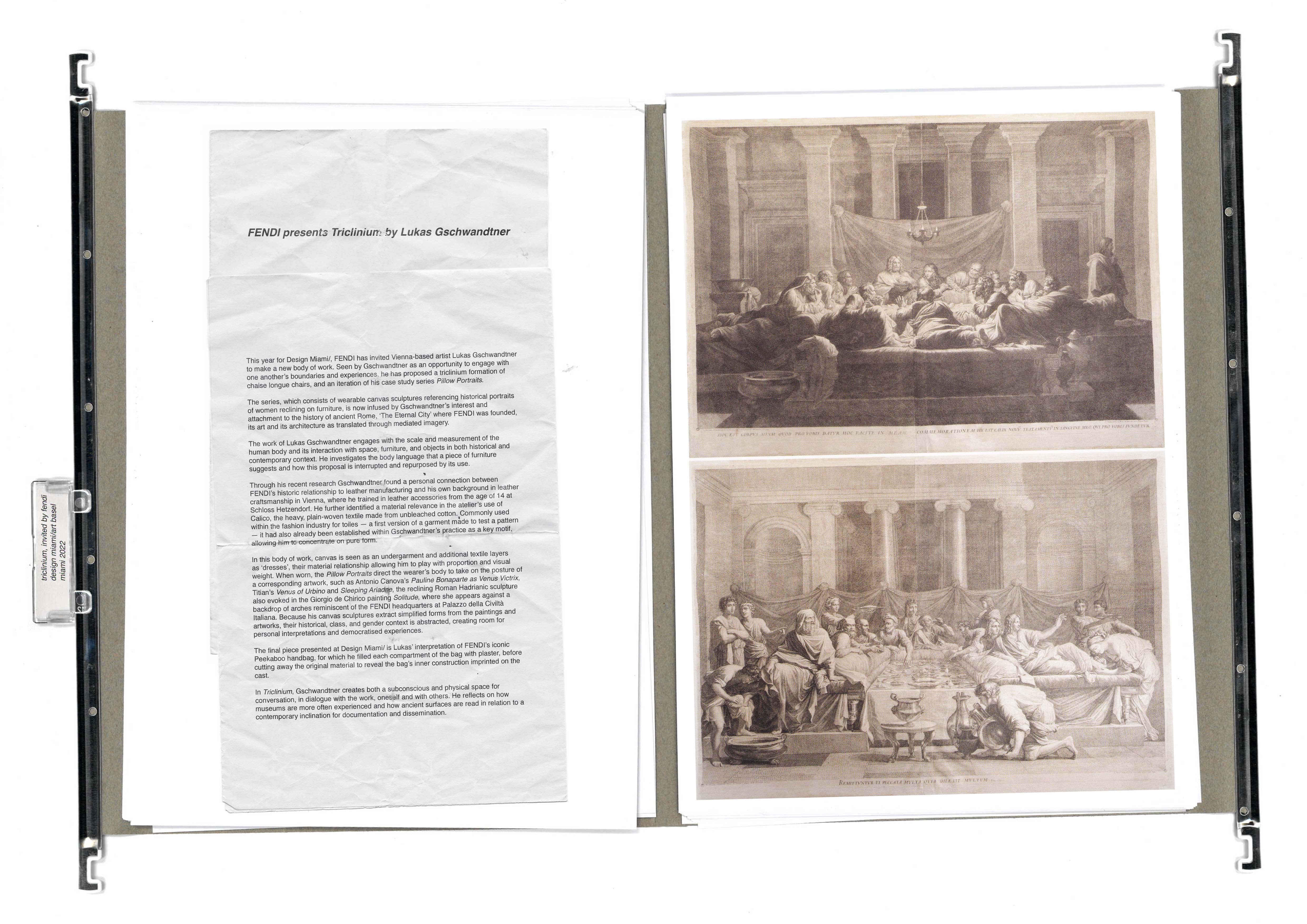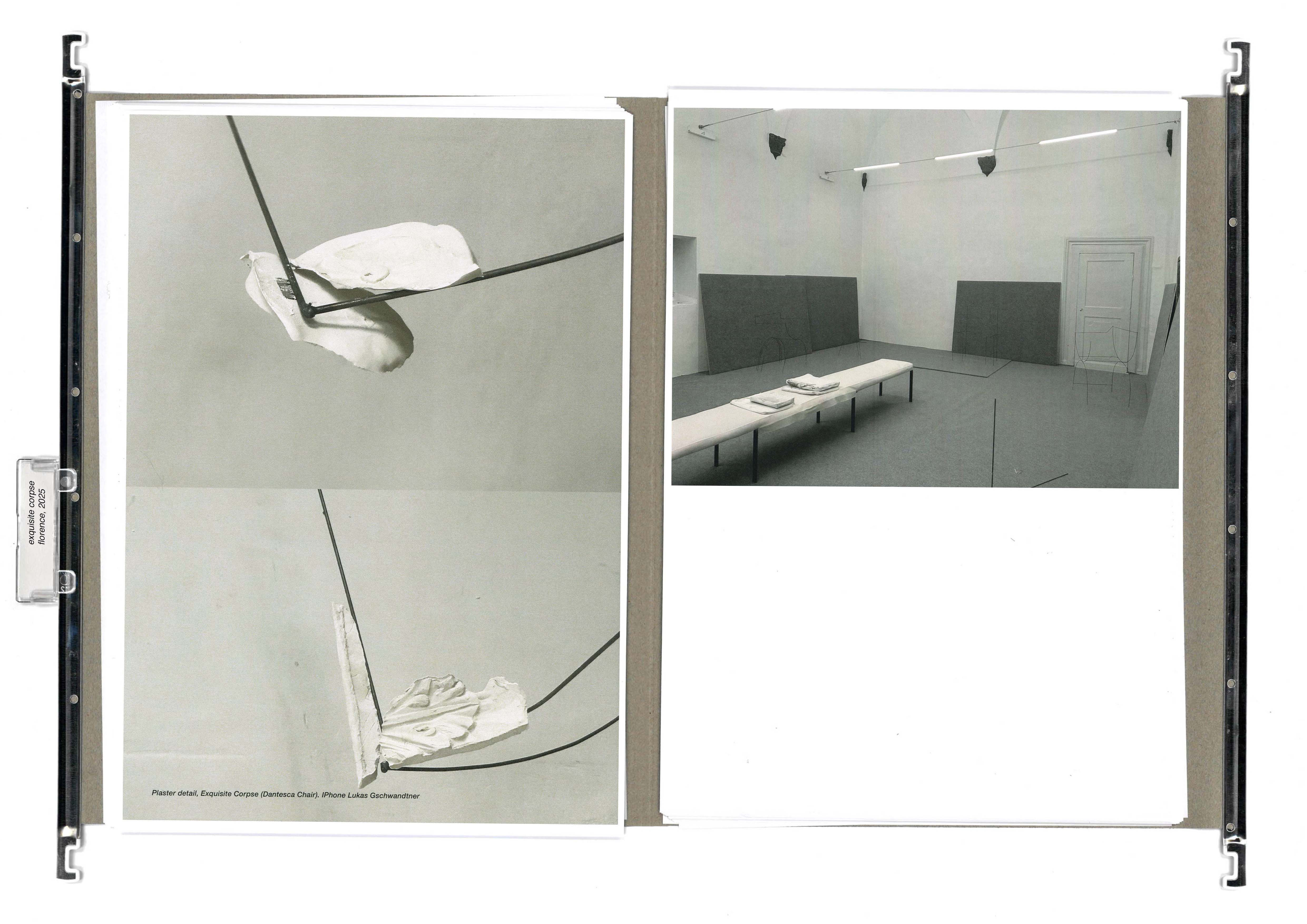 exquisite corpse, florence, 2025 / freudian seatings for 50 minutes, a play written by deborah levy, zurich, 2025 / blind studies, basel, 2025, vienna, 2024 / pressed 18th and 19th century chair fragments, acne studios atelier, paris, 2024 / fossilized canvas fresco, family portrait of chairs, paris 2024, pressed 18th century armchair fragments, paris, 2024, a room of her own, mexico city, 2023, scenography for acne studios SS24 show presentation, paris 2023, lazy pillows, vienna 2023 / triclinium, invited by fendi, miami 2022 / fossilized tablecloths, vienna 2022 / lemaire, dover street market, beijing 2022 / theodora and retinue, basilica di san vitale, ravenna 2022 / pillow stuhl, vienna 2021 / pillow portraits, basel 2021 / solo show, pillow portraits, brussels 2021 / personalised caféstuhl, london 2020 / solo show, in verwendung, london 2020 / in verwendung newspaper, london 2020 / wiener maße, mexico 2019 / study of body and chair, london 2019 / melange chair, london 2019 / wiener maße, 2019/20 london / wiener handbuch, london 2018 / contact, gschwandtnerlukas@gmail.com