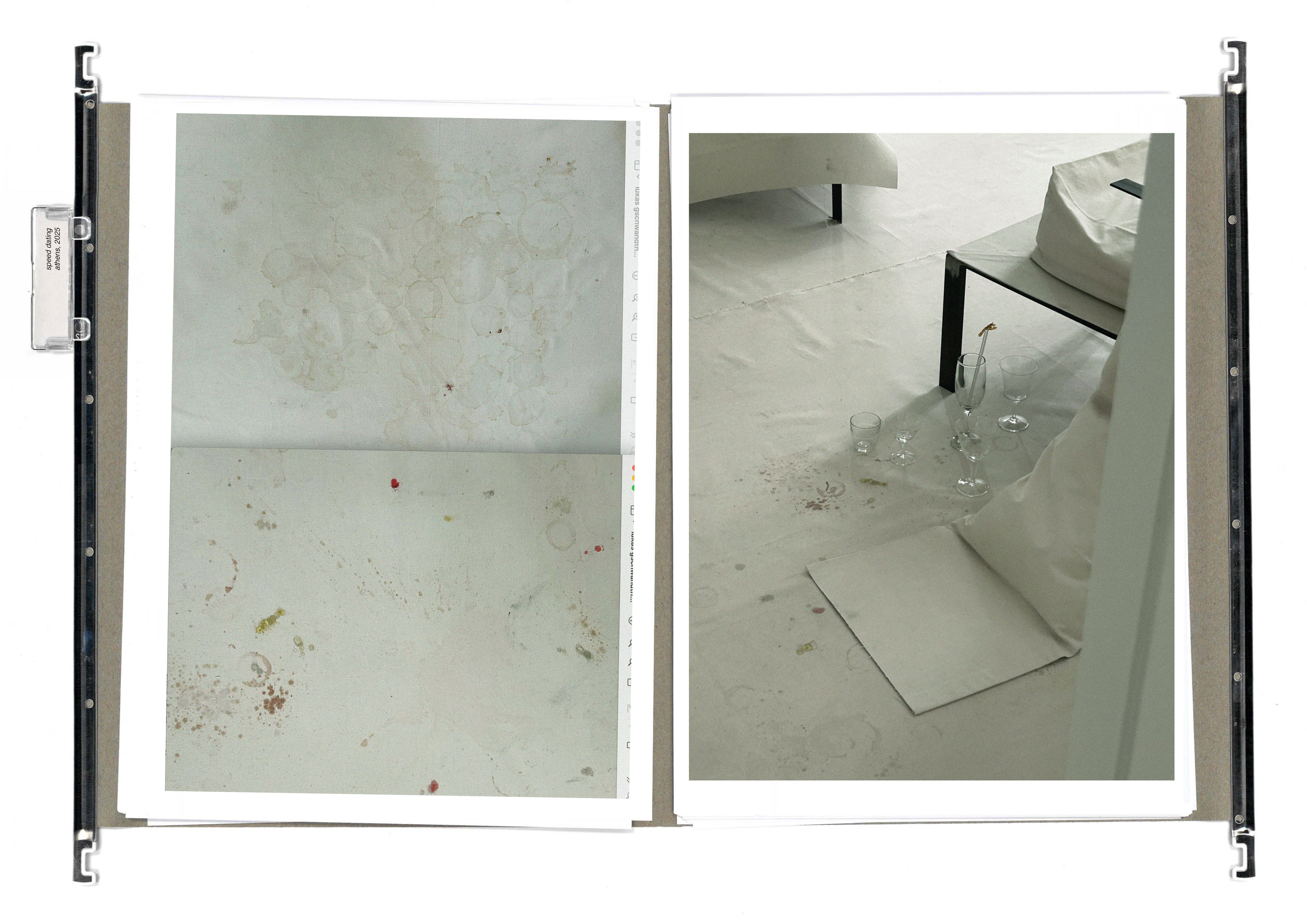 speed dating, athens, 2025 exquisite corpse, florence, 2025 / freudian seatings for 50 minutes, a play written by deborah levy, zurich, 2025 / blind studies, basel, 2025, vienna, 2024 / pressed 18th and 19th century chair fragments, acne studios atelier, paris, 2024 / fossilized canvas fresco, family portrait of chairs, paris 2024, pressed 18th century armchair fragments, paris, 2024, a room of her own, mexico city, 2023, scenography for acne studios SS24 show presentation, paris 2023, lazy pillows, vienna 2023 / triclinium, invited by fendi, miami 2022 / fossilized tablecloths, vienna 2022 / lemaire, dover street market, beijing 2022 / theodora and retinue, basilica di san vitale, ravenna 2022 / pillow stuhl, vienna 2021 / pillow portraits, basel 2021 / solo show, pillow portraits, brussels 2021 / personalised caféstuhl, london 2020 / solo show, in verwendung, london 2020 / in verwendung newspaper, london 2020 / wiener maße, mexico 2019 / study of body and chair, london 2019 / melange chair, london 2019 / wiener maße, 2019/20 london / wiener handbuch, london 2018 / contact, gschwandtnerlukas@gmail.com
